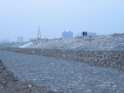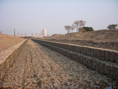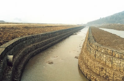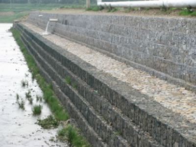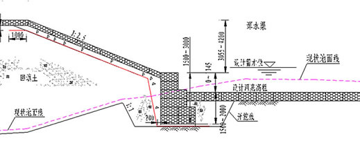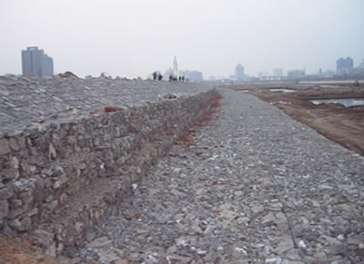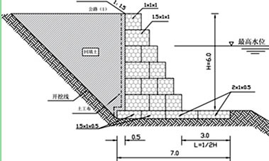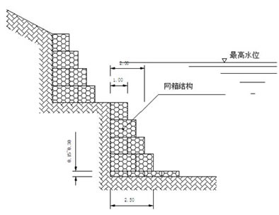 在水位比較高或者是抗洪搶險(xiǎn)期,不適合造圍堰施工的情況下,可將擋墻下部的網(wǎng)墊改為網(wǎng)袋或大塊石,以營(yíng)造比較有利的施工環(huán)境。