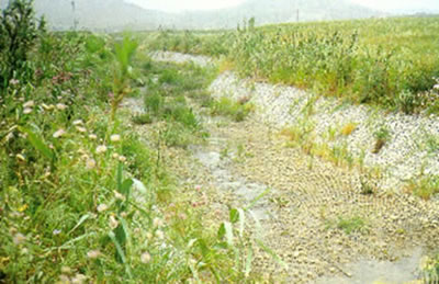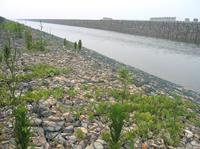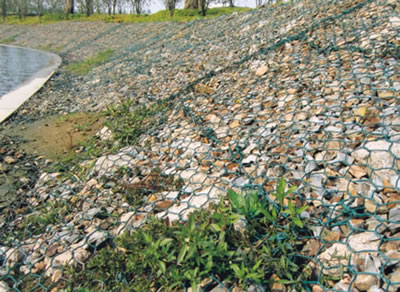 河道整治護(hù)坡目前大多采用塊石或預(yù)制混凝土塊結(jié)構(gòu)型式,重點(diǎn)解決河道受河水沖刷的邊坡穩(wěn)定問(wèn)題,而忽視了河道生態(tài)功能;格網(wǎng)護(hù)坡是一種既能確保邊坡穩(wěn)定,又能維護(hù)和恢復(fù)河道生態(tài)的結(jié)構(gòu)型式。