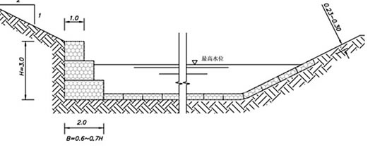 當(dāng)然也可將擋墻和護(hù)坡兩種形式結(jié)合起來(lái),成為復(fù)式斷面。